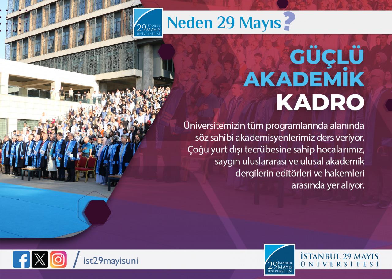 Bütün programlarında, alanında söz sahibi akademisyenlerin ders verdiği İstanbul 29 Mayıs Üniversitesi, çoğu yurt dışı tecrübesine sahip 270 hocasıyla yeni eğitim öğretim dönemine hazır. İstanbul 29 Mayıs Üniversitesi’nde her 9 öğrenciye bir öğretim üyesi düşüyor.
