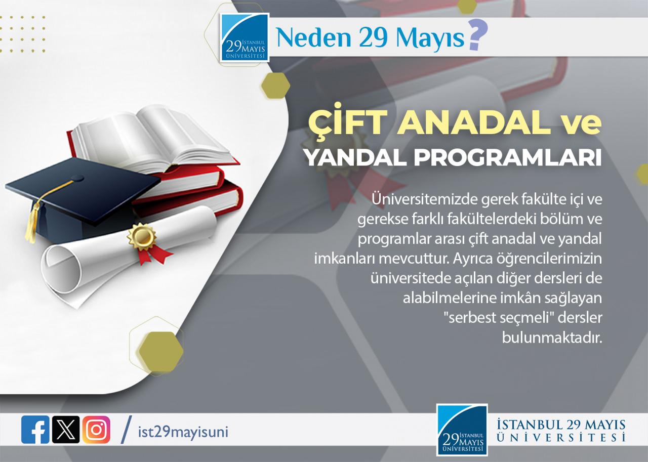 Üniversitede gerek fakülte içi gerekse farklı fakültelerdeki bölüm ve programlar arası çift anadal ve yandal imkanları bulunuyor.