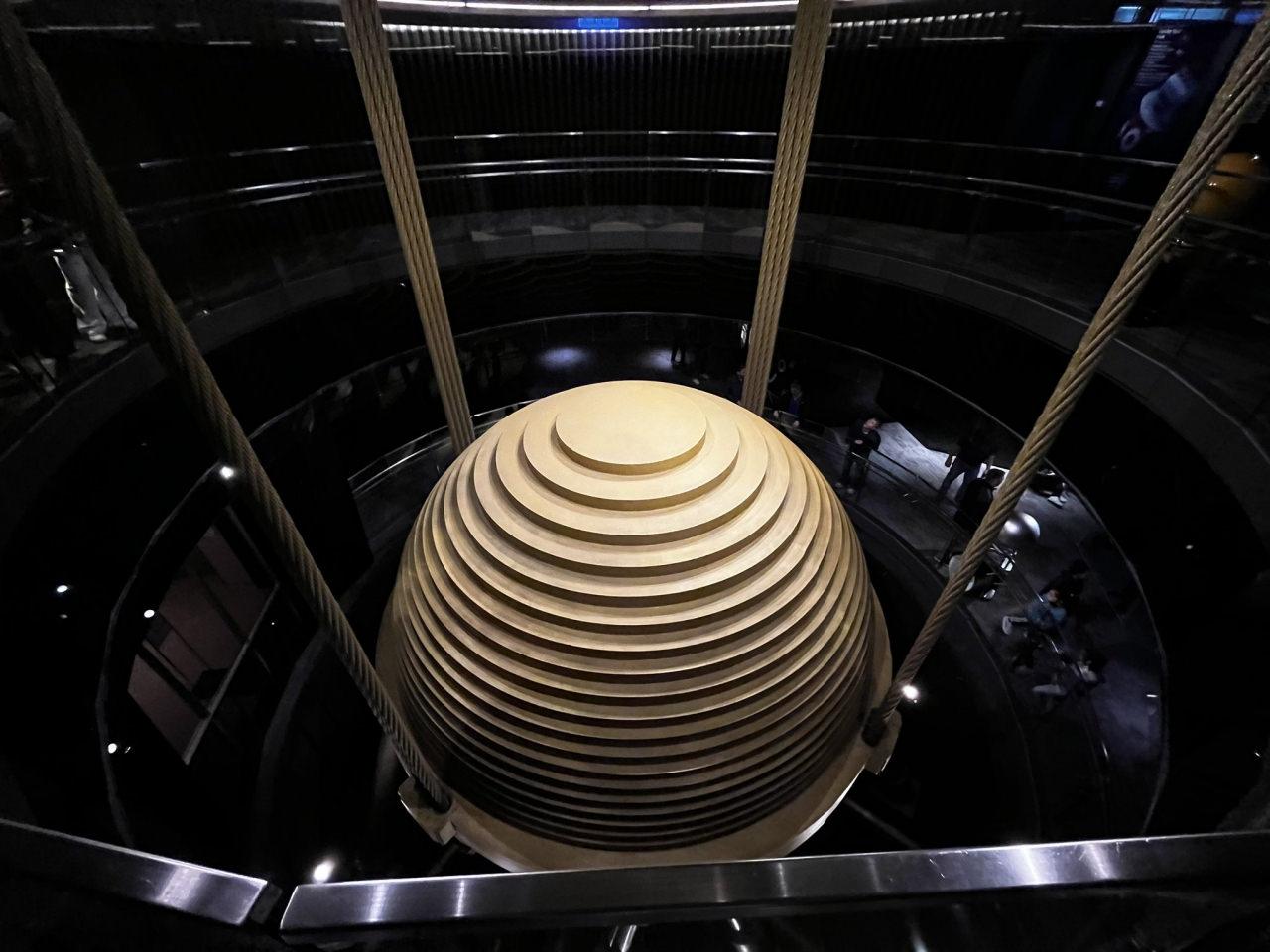 “Ayarlanmış kütle sönümleyici” olarak bilinen 730 tonluk çelik küre, binanın tepesinde birkaç kat arasında asılı duruyor ve buradan halk tarafından izlenebiliyor. Gözlemevi başkentte popüler bir turistik cazibe merkezidir.