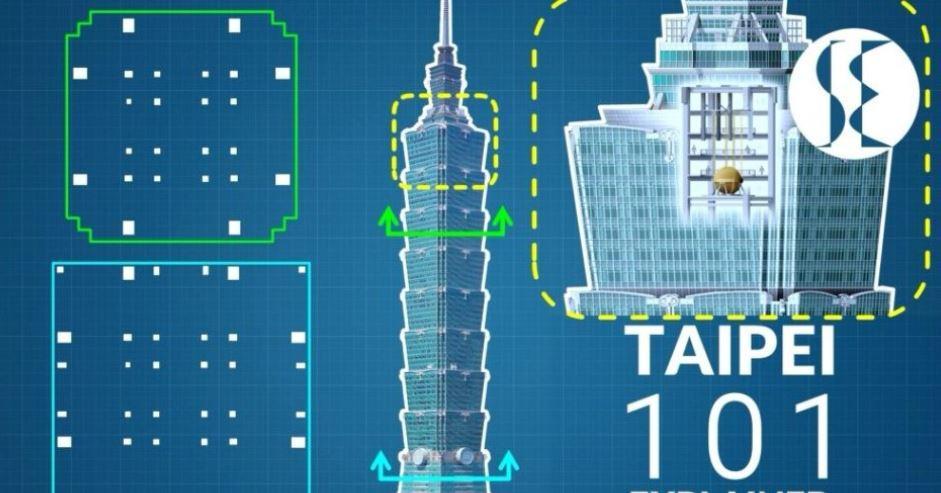 Taipei 101, Tayvan’da ve dünya genelinde denge için damper sistemleri kullanan tek gökdelen değil, mühendisliğin sergilendiği nadir bir durum olsa da.