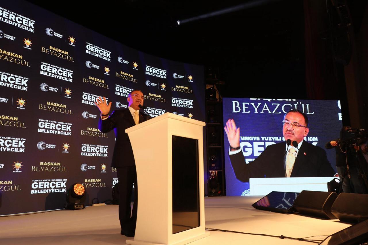 Bozdağ “Ülkemiz için gece gündüz büyük bir gayretle çalışmaya devam edeceğiz. Şanlıurfa’nın kaybedecek vakti yok bir. Dakika bir saniye boşa harcayacak vakti de yok. Hem Zeynel başkanımızın hem diğer belediye başkan adaylarımızın, belediye meclis üyelerimizin Şanlıurfa için daha yapacak çok ama çok işi var, hayata geçirecek çok projelerimiz var. Bizim sizin duanıza sizin desteğinize ihtiyacımız var. Bizi dualarınızla desteklerinizle yeniden bu şehrin yönetiminde. Söz sahibi yaptığınızda Şanlıurfa cumhurbaşkanımızla, hükümetimizle el ele geleceğe daha güçlü bir şekilde yürüyecektir.” diye konuştu.