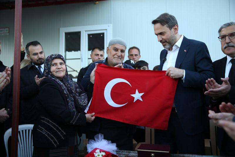 “Birçok kardeşimizi kaybettik, akrabalarımız, birçok insan gitti. 6 Şubat depremleri hakikaten özellikle Hatay’ı, hemen hemen bütün ilçelerini çok büyük etkiledi ama biz birinci günden itibaren devletimiz bütün imkanlarıyla Sayın Cumhurbaşkanı’mızın liderliğinde, tekrar dedik ki ‘Yiğit, düştüğü yerden kalkar’ misali inşallah biz şehirlerimizin bu düştüğü durumu tersine çevireceğiz. Şehirlerimizi tekrar inşa, ihya edeceğiz. Eskisinden çok daha güçlü, düzenli şehirler haline buraları getireceğiz diye milletimize söz verdik. İnşallah bu uğurda yolda gelirken konuştuk, gördük, TOKİ evleri hızla yükselmiş, bir kısmı teslim oldu inşallah diğer kısmı da hak sahiplerine teslim edilecek.”