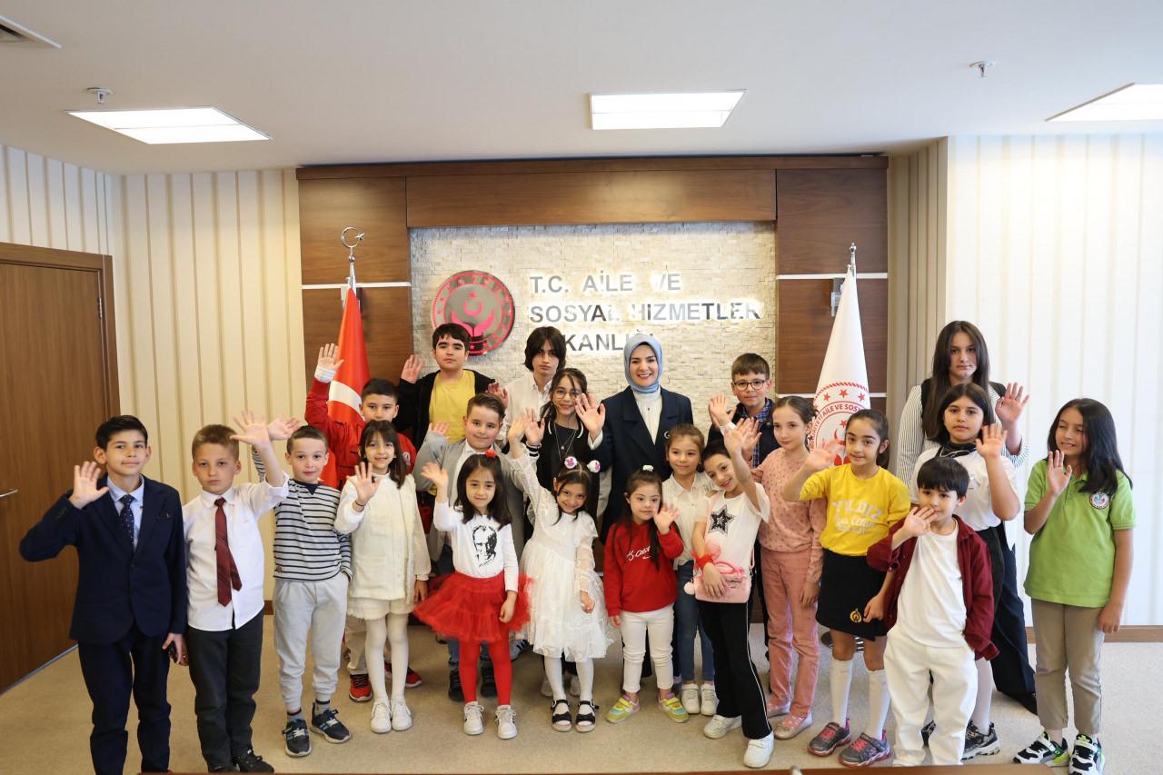 Bakan Göktaş, TBMM’nin açılışının 104’üncü yıl dönümü ile 23 Nisan Ulusal Egemenlik ve Çocuk Bayramı dolayısıyla şehit ve gazi çocukları, Çocuk Hakları Komite Üyeleri ve bakanlık hizmet modellerinden yararlanan ailelerin çocuklarıyla Bakanlıkta bir araya geldi.
