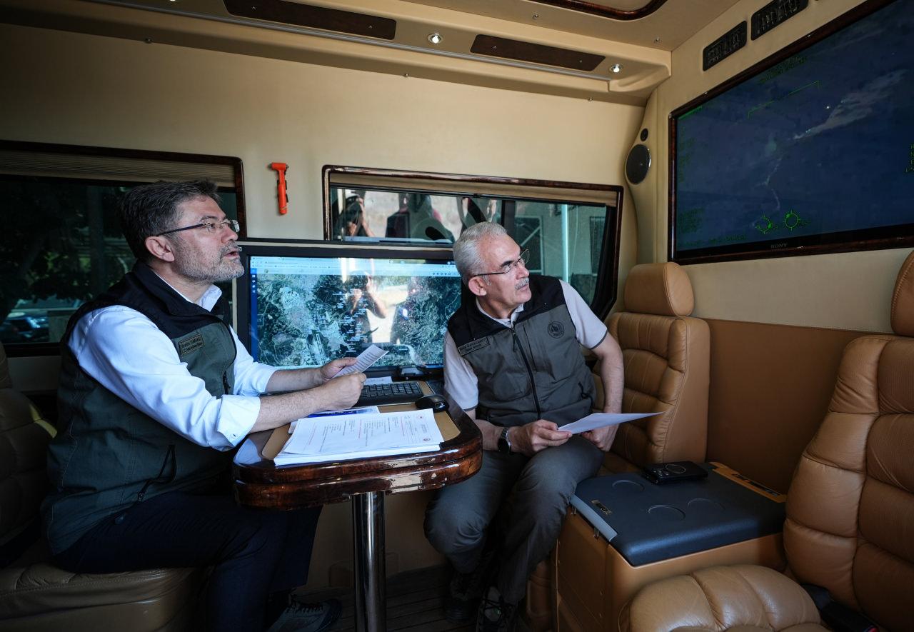 Gaziemir ve Buca ilçeleri arasında etkili olan yangın dolayısıyla İzmir’e gelen Yumaklı, yangın yönetim merkezinde çalışmalar hakkında Orman Genel Müdürü Bekir Karacabey’den bilgi alarak helikopterle yanan alanları inceledi.