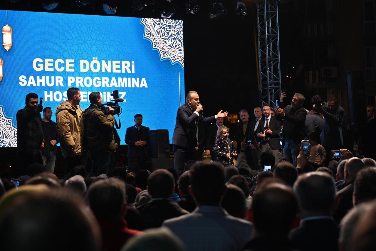 Gemlik 15 Temmuz Demokrasi Meydanı’nda düzenlenen gece döneri sahur programına Bursa Büyükşehir Belediye Başkanı Alinur Aktaş’ın yanı sıra Bursa Milletvekili Mustafa Varank, AK Parti Gemlik Belediye Başkan Adayı Refik Yılmaz, MHP Bursa İl Başkanı Muhammet Tekin, siyasi parti temsilcileri ile çok sayıda vatandaş katıldı.