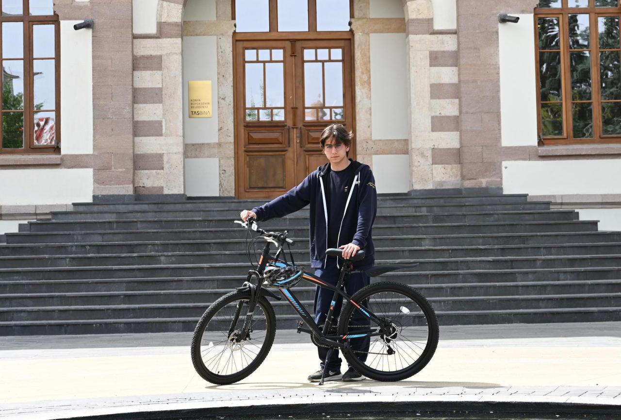 Konya Büyükşehir Belediye Başkanı Uğur İbrahim Altay, ters dönen güzergah tabelasını uzun uğraşlar sonucu düzelten 17 yaşındaki liseli Yusuf Dağtaş’a bisiklet hediye etti.