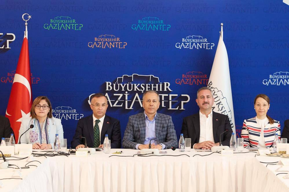 Konuşmasında düzensiz göçle durmaksızın mücadele edeceklerini vurgulayan Bakan Ali Yerlikaya, “Gaziantep, İstanbul’dan sonra düzenli göçmen sayısında 2. sırada. Bunlarla ilgili bizim milletvekillerimizin, belediye başkanlarımızın, meslek odalarımızın, sivil toplum kuruluşlarımızın her biriyle beraber üzerinde durmamız gereken konuları, İçişleri Bakanlığı Göç İdaresi Başkanlığıyla birlikte hep beraber neler yapabileceğimizi konuştuk. Bunları tespit ettik. Biliyorsunuz, biz kabineye geldiğimiz ilk günden itibaren Cumhurbaşkanımızın talimatlarıyla düzensiz göçle mücadele ve göçmen kaçakçılığı organizatörleriyle mücadeleyle ilgili durmadan, duraksamadan amansız bir mücadele ediyoruz. Bununla ilgili rakamları bir yıl değerlendirmemizde kamuoyuyla, aziz milletimizle paylaşmıştık. Göçle mücadeleye kaynağında başlayan hudutların korunmasında ve içeride düzensiz göçle mücadelede onların geri gönderme merkezlerinde ve oradan da kendi ülkelerine deport süreci de var yani. Kaynağında başlayıp kaynağında biten bir yaklaşımla etkin bir mücadele ettiğimizi söyledik” dedi.