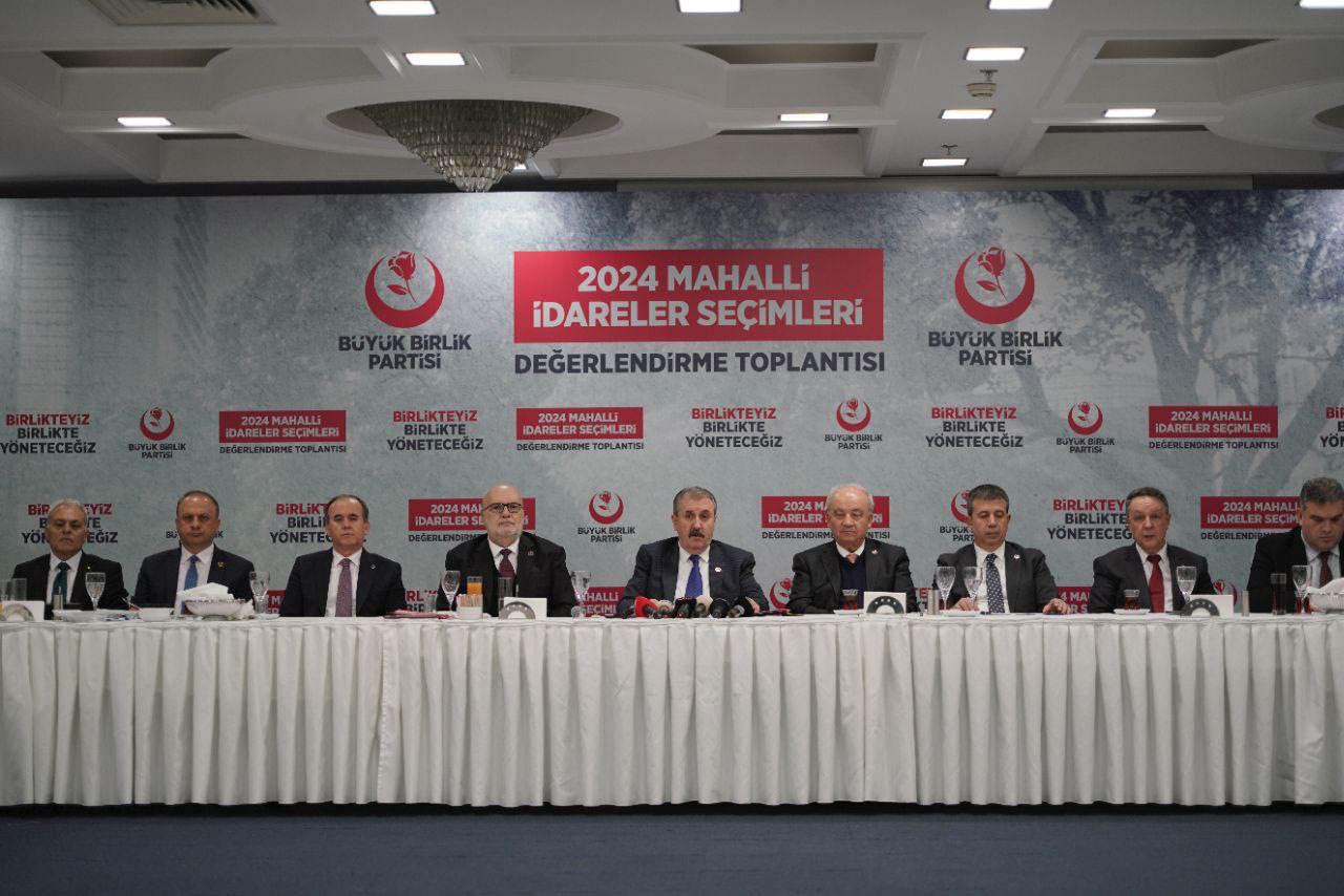 Seçimlerin sağlıklı bir şekilde tamamlandığını ifade eden Destici, “Biz kazananları tebrik ediyoruz. Tabii ki Cumhur İttifakı’nın bir parçası olarak Cumhur İttifakı’nın bu seçimlerde aldığı oy ve kazandığı belediye sayısı elbette ki, bir önceki yerel seçimlere göre düşmüştür. Ve elbette ki bizleri de üzmüştür. Ama genel olarak oylara baktığımız zaman Cumhur İttifakı’nın oylarında bir düşüş vardır. Ama hala üç partinin il genel meclisi ve belediye meclisi oylarının toplamı 42-43’ler civarındadır. Ve dolayısıyla da Cumhuriyet Halk Partisi ya da Cumhuriyet Halk Partisi’nin daha önce ittifak yaptığı partilerle oylarını topladığında yine onların üzerindedir. Cumhuriyet Halk Partisi aldığı yüzde 37 oyun tamamının kendisinin olduğunu hesap ederek yoluna yürürse büyük hata yapar. Çünkü bir önceki daha bir sene bile olmayan genel seçim sonuçlarına baktığımızda oyu yüzde 8 olan DEM Partisi 4’e düşmüştür. İYİ Parti oyunun 3’te 2’sini kaybetmiş gözükmektedir. Dolayısıyla bu oylar belediye seçimlerinde özellikle büyük şehirlerde tamamen Cumhuriyet Halk Partisi’ne gitmiştir. Adalet ve Kalkınma Partisi’nin aldığı yüzde 35 oyun içerisinde hem MHP’nin hem Büyük Birlik Partisi’nin de oyu vardır. Çünkü biz sadece 4’te 1 yerde aday gösterdik. 381 büyük belediye başkanlığında aday gösterdik. Geri kalanının tamamında Cumhur İttifakı partilerinin adaylarını destekledik. Bizim oyumuzun da önemli bir kısmı Cumhur İttifakı partilerine daha çok da AK Parti’nin aldığı oy toplamıydı.” ifadelerini kullandı.