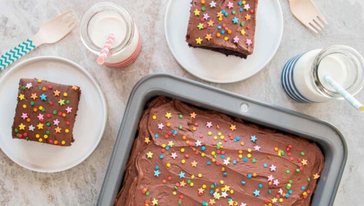 Çikolatalı tepsi keki tarifini yapmak için öncelikle fırınınızı 180 derecede çalıştırın. en az 2,5 cm derinliğe sahip 33×23 cm ebatlarında bir fırın tepsisine yağlı kağıt serin ve kenara alın.