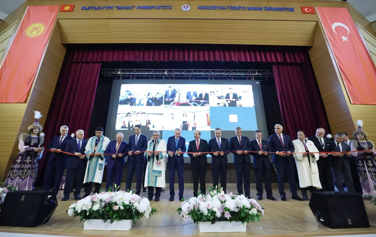 Cumhurbaşkanı Recep Tayyip Erdoğan, Kırgızistan- Türkiye Manas Üniversitesi'ni ziyaret ve toplu açılış töreninde konuştu. Türkiye-Kırgızistan kardeşliğini köklerinin derinlere inen ulu bir çınar misali her geçen yıl büyüdüğünü, güçlendiğini ve farklı alanlara dal budak saldığını belirten Cumhurbaşkanı Erdoğan, "Atalarımızdan tevarüs ettiğimiz bu kardeşlik ve iş birliği ruhunu geleceğe taşımak üzere kararlı adımlar atıyoruz. İş birliğimizin sürekliliğinin en önemli güvencesini, hiç şüphesiz, eğitim öğretim alanındaki projelerimiz oluşturuyor. Türkiye olarak Kırgız gençlerinin dağ aydınlık bir gelecek kurmalarına destek olmak amacıyla eğitim öğretim sahasında çalışmalarımızı sürdürüyoruz" dedi.