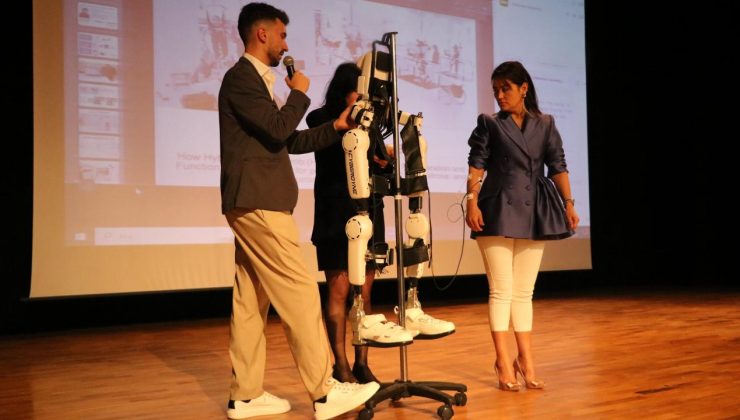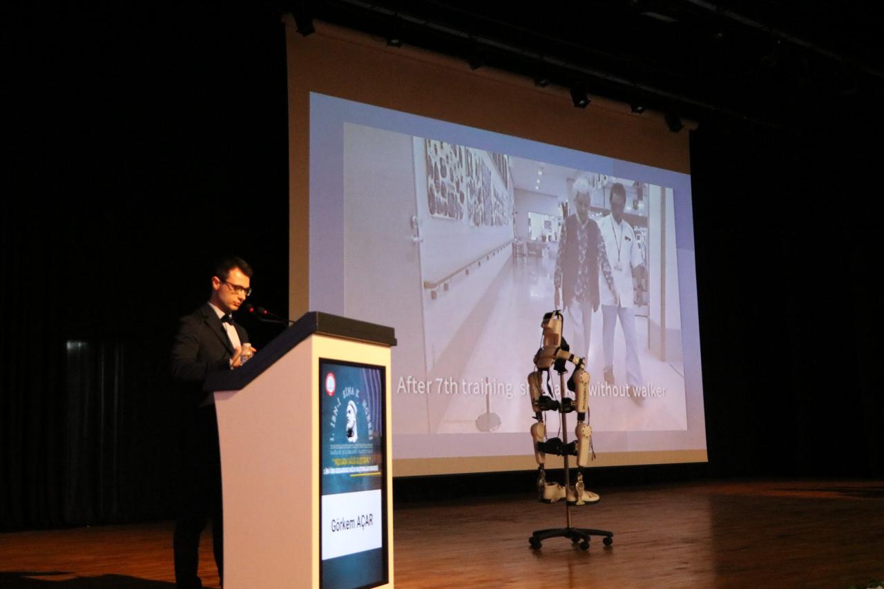 Nörolojik veya ortopedik hastalığı bulunan kişilerin yürüme tedavisinde kullanılabilen dış iskelet ve robotik rehabilitasyon cihazı ‘Cyberdyne’ katılımcılara anlatıldı. 21. Yüzyıl Keşif Ödülü alan ilk düşünce gücüyle çalışan robot ‘Cyberdyne’ hakkından konuşan Uzman Fizyoterapist Görkem Açar, “Bu dış iskeletler, nörolojik hastalıklar başta olmak üzere ki bu hastalıklar; omurilik felci, inme, MS, Parkinson ve serebral palsi hastalarının belli kısımları başta olmak üzere 10’dan fazla nörolojik hastalığının ve ortopedik hastalıkların yürüme ve hareket fonksiyonlarında fayda sağlamayı amaçlamaktadır.” Açıklamasına yer verdi. Uzman Fizyoterapist Açar, 20 yıl içinde Cyberdyne teknolojisinin veya diğer robotik cihazların gelişmesiyle birlikte yaygınlaşmasının planlandığını belirtti.