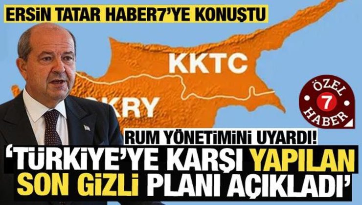 KKTC Cumhurbaşkanı Ersin Tatar, 20 Temmuz Mutlu Barış Harekâtı başta olmak üzere, Yunanistan ve Güney Kıbrıs Rum Yönetimi’nin (GKRY) Mari’de deniz üssü kurma girişimleri ve İsrail’in Güney Kıbrıs’ı lojistik üssü haline getirmesi konularında Haber7 muhabiri Yavuz Selvi’ye önemli açıklamalarda bulundu.