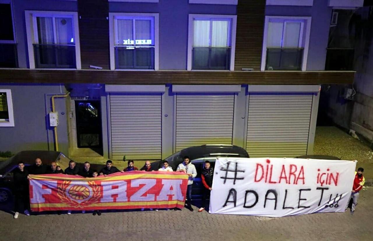 Ayrıca, Göztepeli taraftarlar da koyu bir Göztepeli olan Dilara Aldanoğlu’na destek için evinin önüne geldi. Taraftarlar ‘Dilara için Adalet’ yazılı pankart açtı. Ardından ailenin yanına çıkan bir grup taraftar desteğini vurguladı.