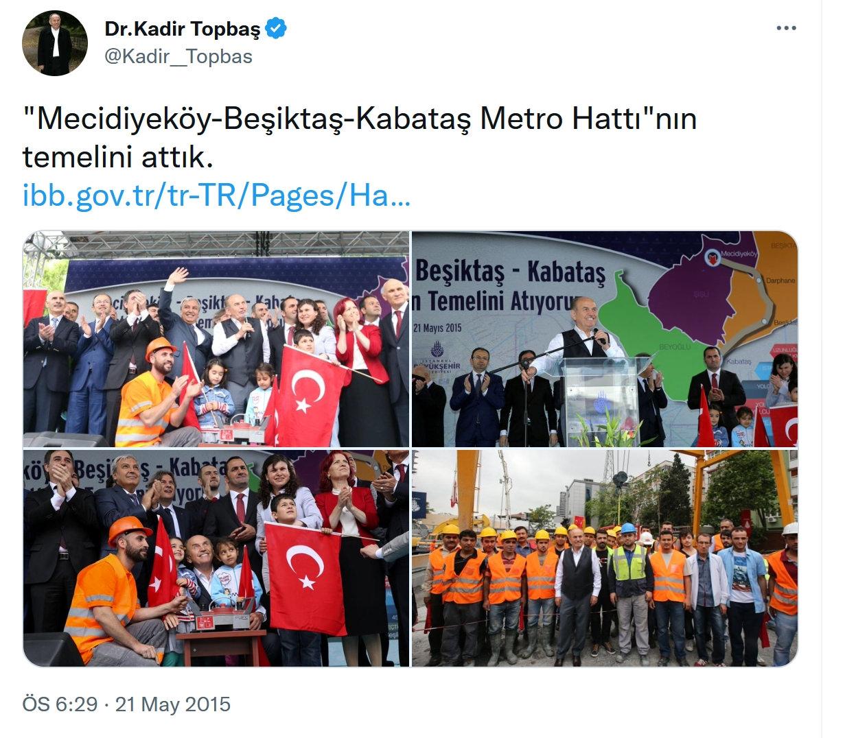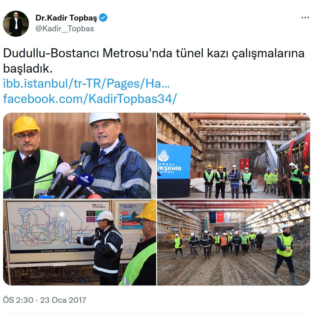 | Topbaş döneminde ihale edilip yapımına başlanan birçok metro hala İmamoğlu tarafından inşa ediliyor. İmamoğlu döneminde bitirilerek açılışı yapılan Dudullu-Bostancı Metrosu ile Mecidiyeköy-Kabataş Metrosu’nun Fulya ile Yıldız İstasyonları Kadir Topbaş’ın projelendirip başlattığı raylı sistemler arasında. |