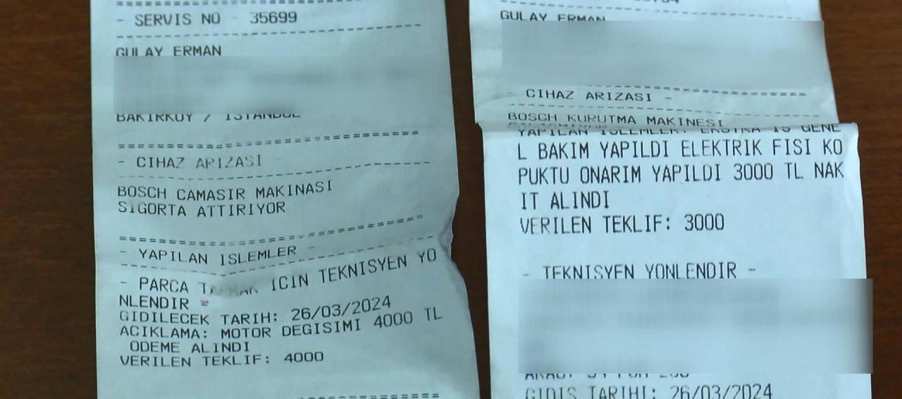 Bakırköy’de yaşayan Gülay Erman, 26 Mart’ta, çamaşır makinesinin arızalanması üzerine internetten bir tamirci buldu. İddiaya göre evine gelen tamirciler, önce çamaşır makinesinin motorunun arızalı olduğunu söyleyip 7 bin lira karşılığında yeni motor taktı. Makinenin aynı gün tekrar arızalanması üzerine Gülay Erman, firmaya telefon ederek durumu bildirdi. Aynı tamirciler ikinci kez eve gelerek, firmada tamir edilmesi gerektiğini söyleyerek çamaşır makinesini alıp götürdü. 1 aydır firmaya telefon edip makinesinin durumunu soran ve makineyi geri almak istediğini belirten Gülay Erman, henüz sonuç alamadığını ve mağduriyet yaşadığını söyledi. Evine gelip çamaşır makinesini götüren servis çalışanına cep telefonu numarası üzerinden defalarca mesaj atan Erman, çalışanın kendisini oyalayıcı nitelikte sesli ve yazılı cevaplar aldığını söyledi. Tüketici Hakem Heyeti’ne şikayette bulunan, Gülay Erman polise giderek şikayetçi oldu.