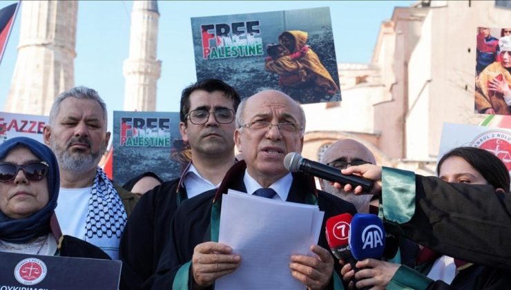 Ayasofya-i Kebir Cami-i Şerifi önünde açıklama yapan İstanbul 2 Nolu Baro Başkanı Yasin Şamlı, İsrail’in saldırılarına dikkati çekerek, Gazze’de kadınlar ve bebeklerle birlikte insanlık onuru, vicdanı, insani değerler, ahlak ve hukukun da katledildiğini söyledi.