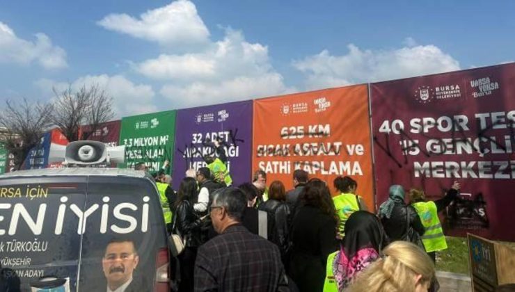 Yerel seçim sürecinde Başkan Erdoğan tarafından yeniden aday gösterilen Bursa Büyükşehir Belediye Başkanı Alinur Aktaş’ın 6 yıllık süreçte Bursa’da hayata geçirdiği hizmetleri ve projelerini içeren tanıtım tabelalarına İyi Parti Büyükşehir Belediye Başkan adayı Selçuk Türkoğlu ve beraberindeki partililer tarafından 17 Mart 2024 Pazar günü sprey boya ile karalayarak provake edici sözler yazıldı.