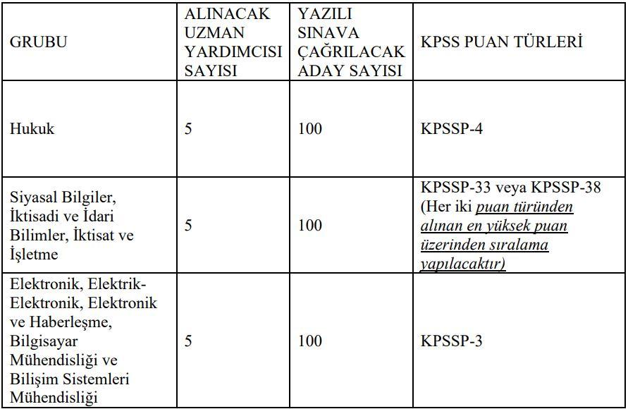 KVVK 2022 ve 2023 yılı Kamu Personeli Seçme Sınavı (KPSS) sonuçlarına göre, yazılı sınav ile personel alımı yapacak. Her grup için başvuruda bulunan adaylardan, KPSS puan sıralamasına göre en yüksek puandan başlamak üzere belirlenen boş kadro sayısının 20 katı kadar aday, yazılı sınava çağırılacaktır. Yapılan sıralama sonucunda son sıradaki aday ile eşit puana sahip diğer adaylar da yazılı sınava çağrılacaktır.