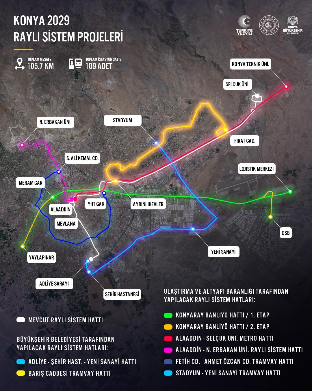 Konya’da raylı sistem konusunun en önemli gündem maddelerinden birisi olduğunu kaydeden Başkan Altay, “Konya bugüne kadar 27 kilometre raylı sistem yapmayı başarabilmiş Anadolu’daki en güçlü şehirlerden birisi. Şimdi bunu bir adım öteye götürerek bakanlığımızla birlikte, bunun 105 kilometreye çıkarılmasıyla ilgili çalışmaları paylaşmıştık. Konya Büyükşehir Belediyesi olarak bunun 28.1 kilometresini biz yapacağız, bakanlığımız 77 kilometre raylı sistem hattını şehrimize kazandırmış olacak” dedi.