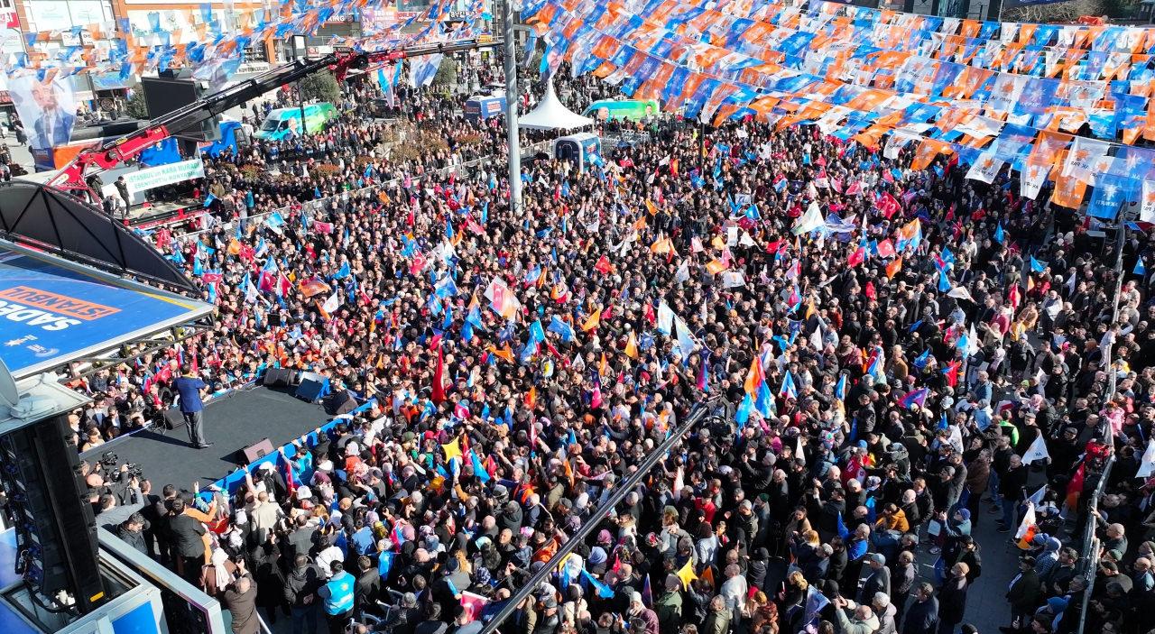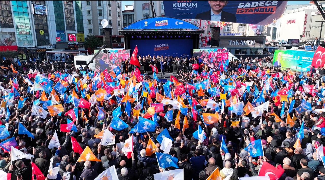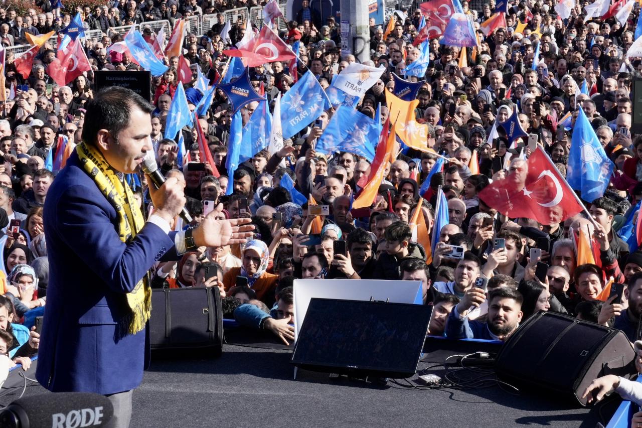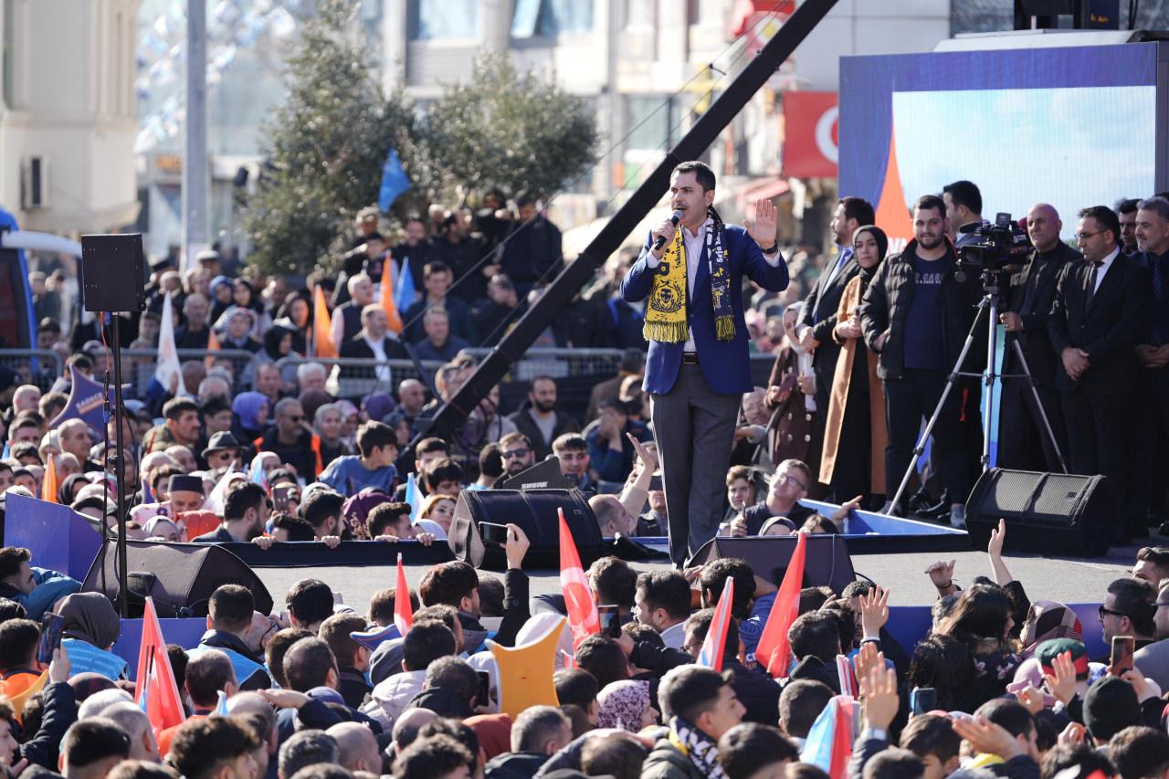 Asrın felaketinde biz 11 ilimize gittik. 11 ilimizde, ilçemizde gitmediğimiz yer kalmadı. Ben 81 ile gitmiş bir kadeşinizim. 550’yi aşkın ziyaret gerçekleştirdim. O ziyaretlerin bazıları bir ay sürdü. Gittik, milletimizin elini sımsıkı tuttuk. O eli milletimizin yüzünde mutluluğu görene kadar, milletimiz huzur ve güven içerisinde olana kadar asla bırakmadık. Biz bir söz verdik ve tuttuk. Bugün Türkiye’nin neresine giderseniz gidin Murat Kurum söylüyorsa eğer, Murat Kurum yapar derler. Biz bu anlayışla çalıştık, bu anlayışla çalışmaya da devam edeceğiz.’’ sözleriyle de İstanbul’a el uzatmayanlara 31 Mart’ta artık dur diyeceklerini dile getirdi.