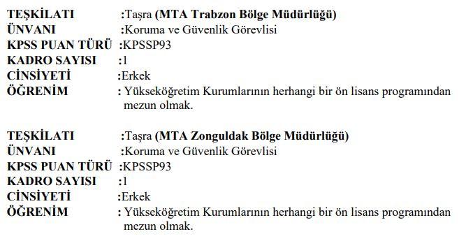 Maden Tetkik ve Arama Genel Müdürlüğü (MTA) merkez ve taşra birimlerinde 657 sayılı Devlet Memurları Kanunu’nun 4’üncü maddesinin B fıkrasına göre istihdam edilmek üzere, 06/06/1978 tarihli ve 7/15754 sayılı Bakanlar Kurulu Kararına Ek’li “Sözleşmeli Personel Çalıştırılmasına İlişkin Esaslar” ın ek 2. maddesinin (b) fıkrasına göre aşağıda belirtilen ünvanlarda 2022 yılı KPSS (B) grubu puan sıralaması esas alınmak suretiyle yazılı ve sözlü sınav yapılmaksızın 22 (yirmi iki) sözleşmeli personel alınacaktır. Sıralamaya girenlerin 5 (beş) katı kadar yedek pozisyon belirlenecektir. Asıl kazananlardan müracaat eden olmadığı takdirde veya aranan şartları taşımadığı tespit edilenlerin yerine yedek kazananlardan sırasıyla yerleştirme yapılacaktır.
