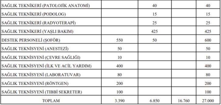 SAĞLIK BAKANLIĞI 27 BİN PERSONEL ALIMINDA KADRO DAĞILIMI
