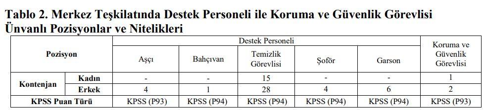 Merkez ve taşra teşkilatında büro personeli, koruma ve güvenlik görevlisi ile destek personeli ünvanlı pozisyonlara başvuracak adayların ÖSYM tarafından 2022 yılında yapılan Kamu Personel Seçme Sınavı (B) Grubundan; lisans mezunları için KPSS (P3), eğitim fakültesi mezunları için KPSS (P10), ön lisans mezunları için KPSS (P93), ortaöğretim mezunları için KPSS (P94) puan türünden en az 60 (altmış) puan almış olmak.