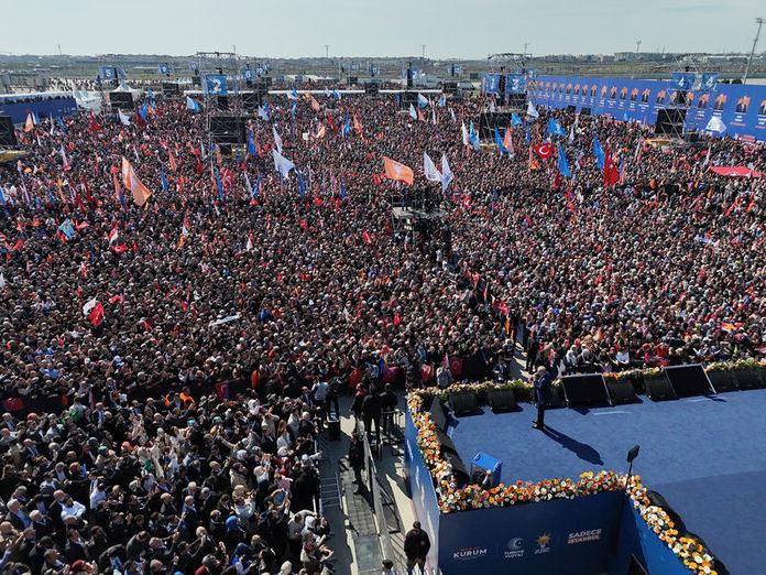 Şu anda diğer genel başkanlar evlerinde ofislerinde yatarken ben 25 vilayete gittim. Çalışacağız, koşacağız. İstanbul olunca konu bu yatırım listesi o kadar uzun ki tek tek anlatmaya kalksak günler yetmez. Şu anda karşımda 650 bin kişi var. Bu meydanda milyona alıştık, bugün ise 650 bin kişi.