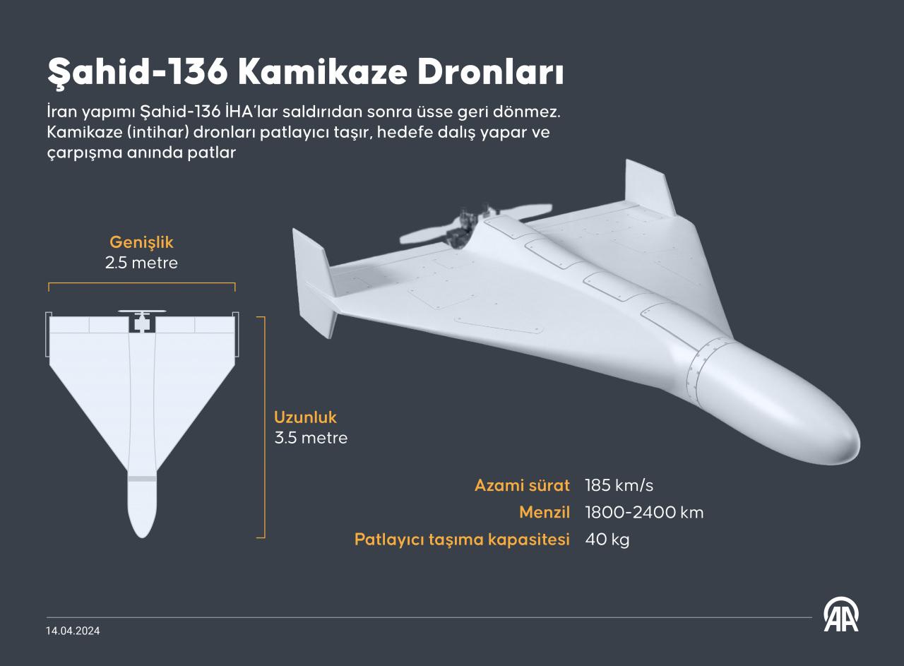 New York Times’a konuşan ABD’li yetkililer, “İran, başlattığı kamikaze İHA saldırısını büyük ihtimal daha sonra başlatılacak füze saldırılarıyla senkronize etmeyi hedefliyor. Kamikaze İHA’lar, füzeler ateşlenmeden önce İsrail savunma sistemlerinin dikkatini dağıtmak için kullanılabilir.” açıklamasında bulundu.