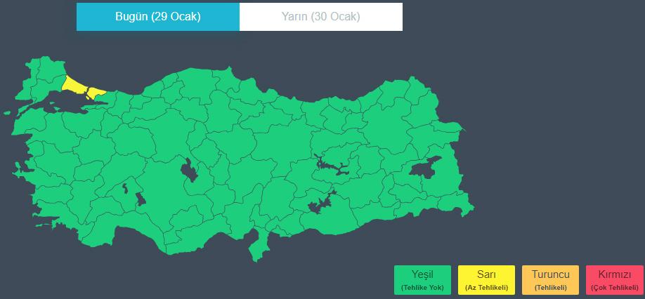 HARİTADA SADECE İSTANBUL İÇİN SARI ALARM VERİLDİ