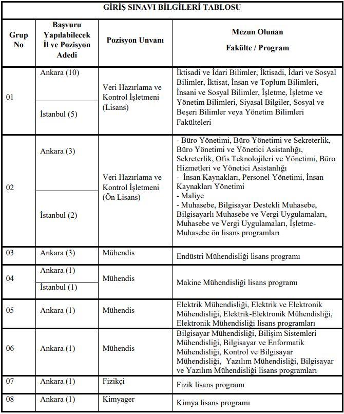 Veri Hazırlama ve Kontrol İşletmeni (Lisans) pozisyonuna başvuracak adaylar için;