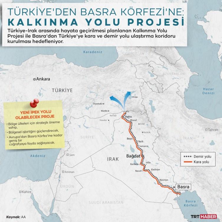 Irak’ın yeniden inşası ve bölgesel istikrar için önemli olan bir diğer çalışma ise kuşkusuz Kalkınma Yolu Projesidir. Türkiye ve Irak arasında geliştirilen büyük ticaret girişimi, Irak’ın Basra limanından başlayarak Türkiye’nin güneydoğusuna ve oradan da Avrupa’ya uzanan bir demiryolu ve otoyol ağı oluşturmayı hedefliyor. Bu proje, ekonomik kalkınma, bölgesel entegrasyon ve ticaretin artırılması açısından büyük bir öneme sahip…
