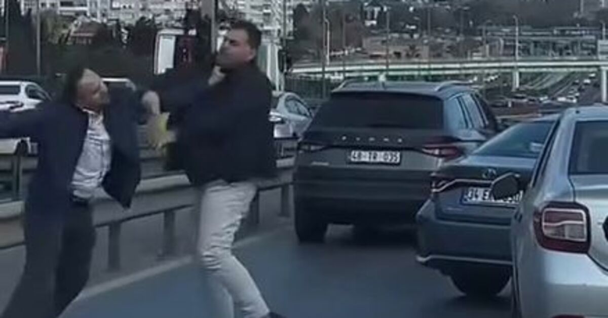 DHA’nın haberine göre tartışmanın kavgaya dönüşmesi sonrasında sürücülerden biri aracıyla diğerinin önünü kesti. İki sürücü arasında yaşanan kavga vatandaşların araya girmesiyle sona erdi. Kavga anları cep telefonu kamerasına yansıdı.