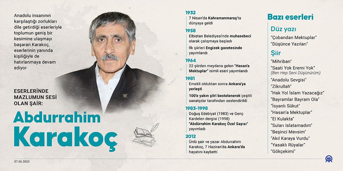Şiirlerinden dolayı hakkında çeşitli davalar açılan Karakoç, kendisine isnat edilen bütün suçlamalardan aklandı. Şiirlerinde ilahi ve beşeri aşk, tabiat, gurbet, toplumsal yozlaşma, Türklük, İslam ve ölüm konularına değinen Karakoç, yaptığı bir açıklamada şiiri, bir gayeye varmak için araç olarak gördüğünü ifade etmişti.