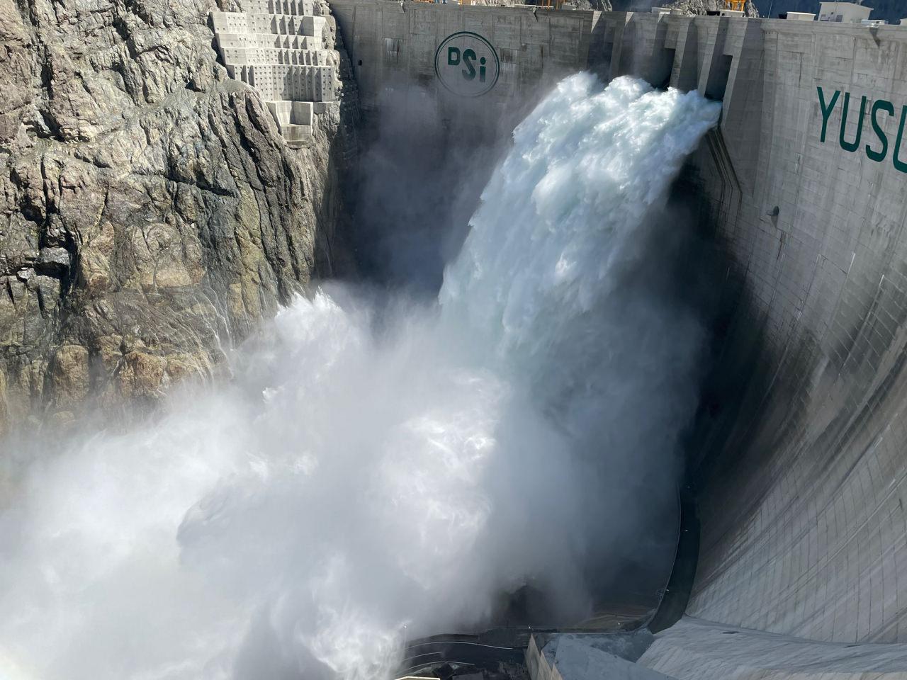 DSİ Genel Müdürü Mehmet Akif Balta, Artvin’in Yusufeli ilçesinde Çoruh Nehri üzerinde yapımı tamamlanıp, enerji üretimlerine başlayan 275 metre gövde yüksekliğiyle Türkiye’nin en yüksek barajı Yusufeli’de incelemelerde bulundu. Balta, kapaklarının açıldığı barajda üstten aşmalı dolusavaklar tam yükte test edilmesi çalışmalarını yerinde inceledi. İncelemeler öncesi açıklamalarda bulunan Balta, “Ülkemizin en yüksek dünyanın ise 5’inci yüksek barajı olan Yusufeli Barajı’nda muhteşem bir su gösterisine tanıklık edeceğiz. Çift dolusavağı olan bu dev tesisten suyun savaklanması yani tahliye edilmesi ender şahit olunabilecek bir durumdur. Esasen hidroelektrik santrallerde suyun savaklanması arzu edilen bir durum değildir. Ancak feyezan akımlarının barajın depolama kapasitesinin üzerinde olduğu durumlarda, su tahliyesi hem barajların hem de yerleşimlerin güvenliği açısından bir zorunluluk olmaktadır. İşte bugün, böyle bir zorunluluk ortaya çıktığında Yusufeli Barajı’ndaki dolusavaklarımızın çalışma durumunu görecek ve test edeceğiz” dedi.
