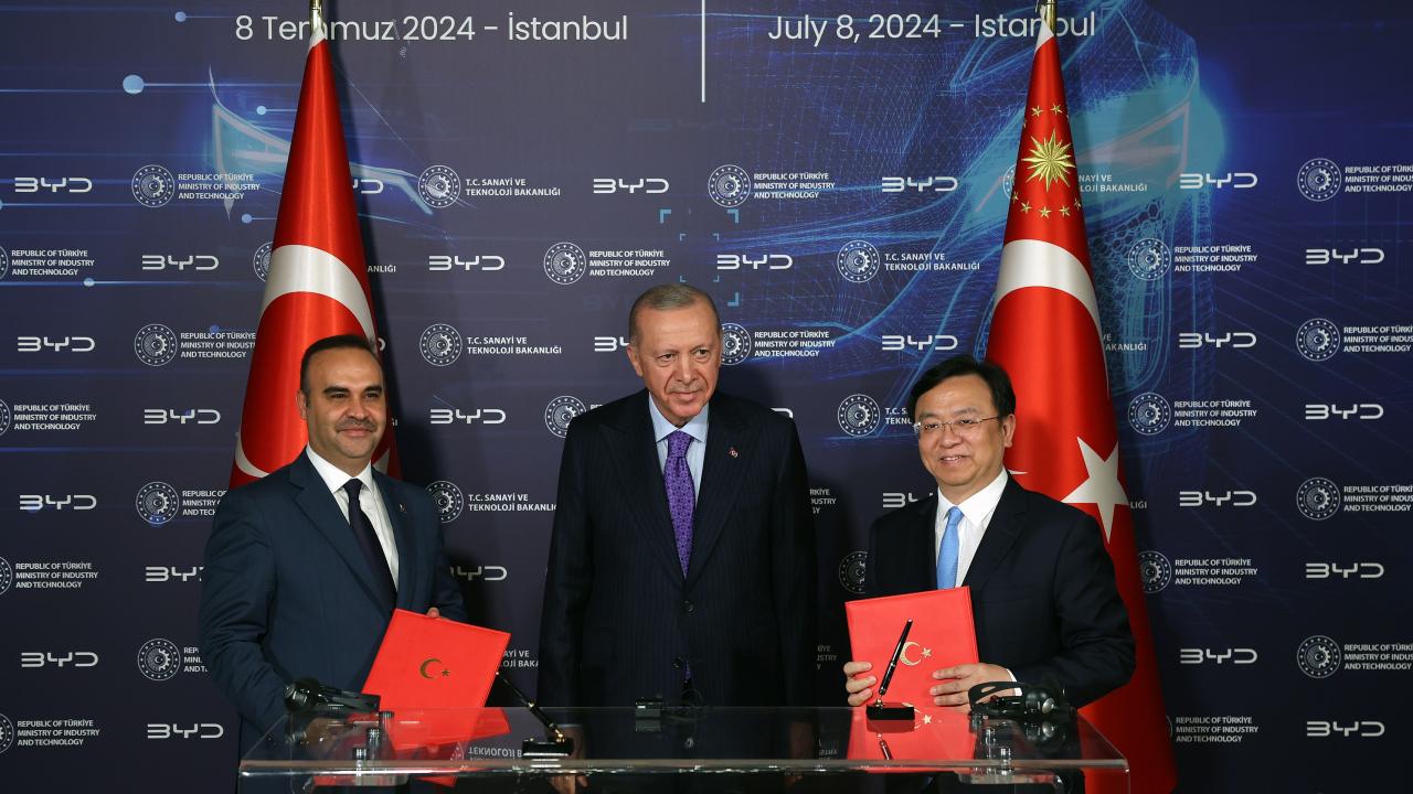 Çinli elektrikli araç üreticisi BYD, yaklaşık 1 milyar dolarlık yatırımla Türkiye’de bir üretim tesisi kuracak. Şirketle Sanayi ve Teknoloji Bakanlığı arasında imzalanan anlaşmaya göre, yılda 150 bin elektrikli ve şarj edilebilir hibrit otomobil üretilecek. Bir AR-GE merkezi kurulacak. 2026 sonunda açılacak tesislerde doğrudan 5 bin kişi istihdam edilecek.