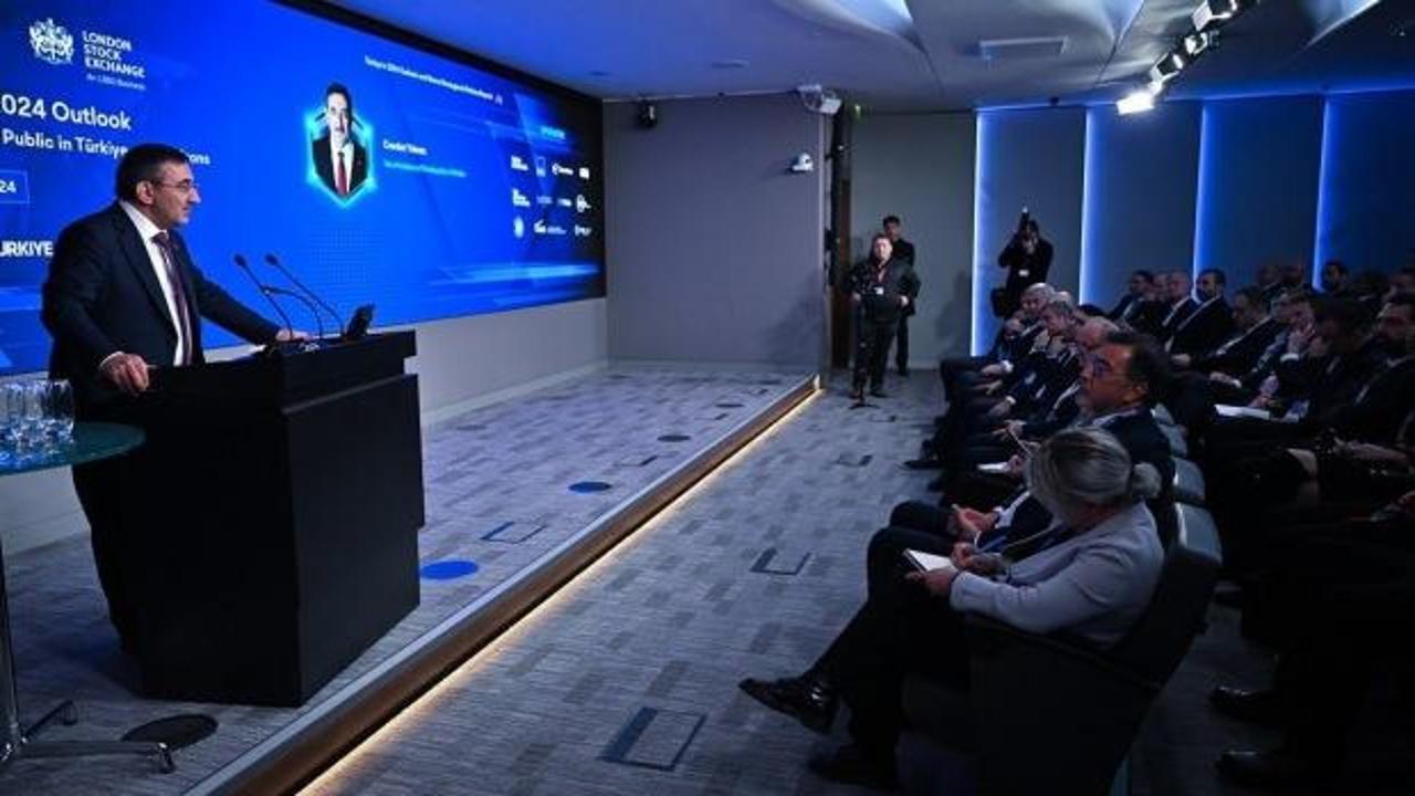 İngiltere'de Londra Borsası'nda gerçekleştirilen etkinlikte uluslararası yatırımcı ve fon yöneticileriyle buluşan Cumhurbaşkanı Yardımcısı Cevdet Yılmaz, Türk ekonomisindeki gelişmeler ve ekonomiyi daha güçlü hale getirmek için atılan adımlara değindi.